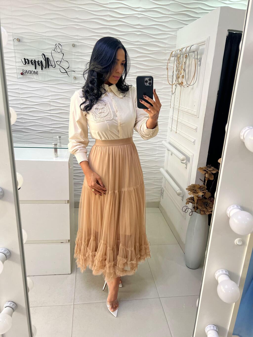 Saia Francielle Tule: A escolha perfeita para quem busca estilo e versatilidade em uma só peça. Esta saia de Tule estilosa é ideal para montar looks que vão desde passeios descontraídos até cultos e eventos mais formais.